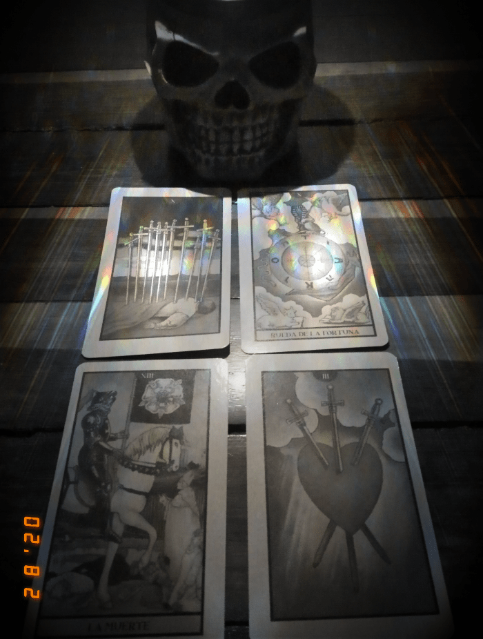Como antes mencioné, el gran riesgo es cortar mi propia carne con los filos de las tumbas que visito, pero no fue esto lo que pasó. Siempre suena una campanada que advierte que es tiempo de salir de la necrópolis, pero no hice caso. Estuve a punto de revelar a mi visitada que, ciertamente, toda su condena recaía en que le faltaban ojos para ver, porque ella misma los había cerrado, y los había cosido con hilos de plata.